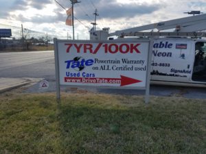 The Automotive repair industry has many different types of signage that we specialize in as well. Whether you need Vehicle Lettering, an Illuminated or non-illuminated sign, or you just need a banner to promote a sale, we can work with you to create a custom sign to convey your message.